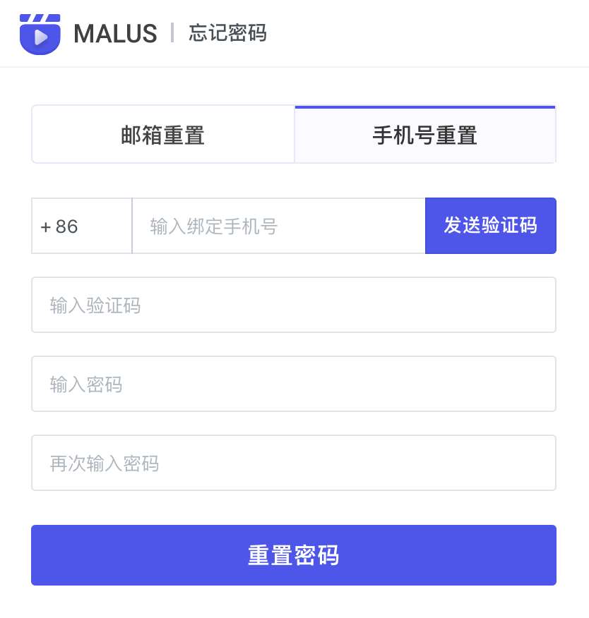 如果忘记了密码,重置密码的方式也相似。在重置密码的页面选择手机号重置即可。