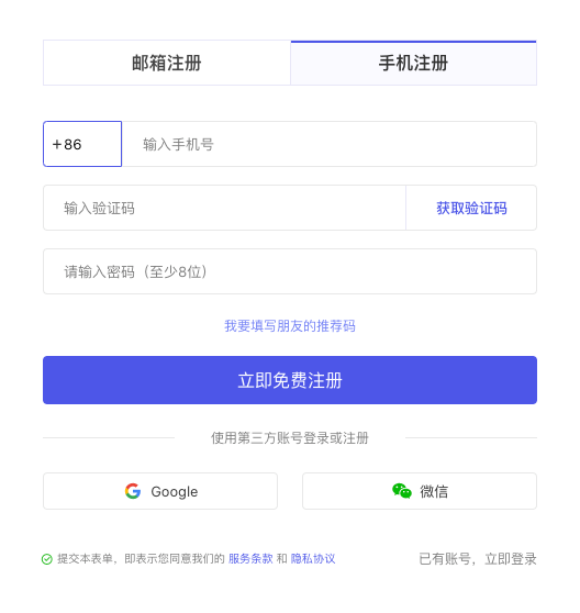 从最早的邮箱注册,加上微信、谷歌账号、苹果ID等第三方账号注册,再到手机号注册,Malus的注册方式已达五种。
