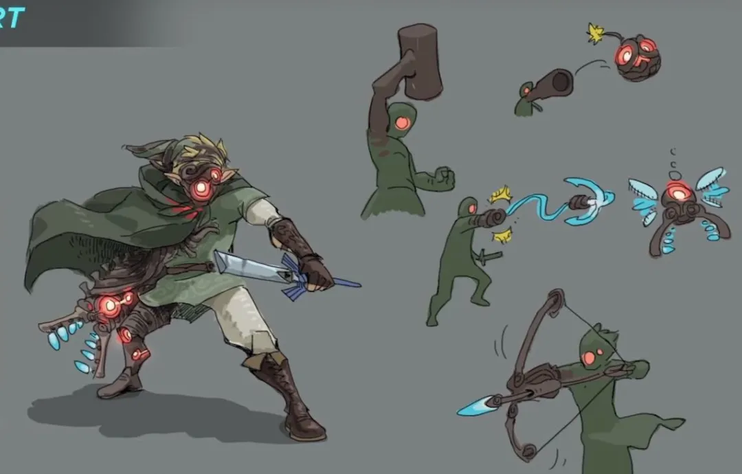 预告片开头是林克从云端自由下落的画面,或许在新作中玩家有办法飞到比空岛还高的地方。预告片中还出现了新的古代机器人,和席卡族古代机器设计风格不同,更像天空剑的风格,中心有类似于绿光的能源。
