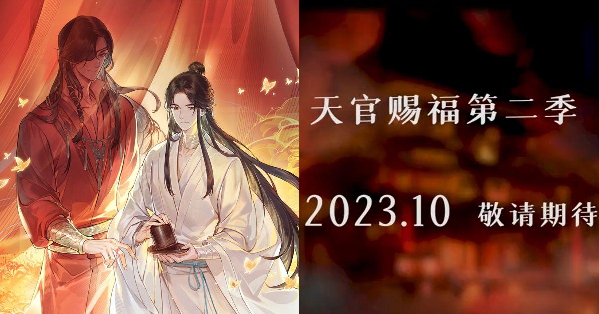 YouTube官方频道影片长度37秒,多了字幕宣布10月将播出第2季,且日本官方推特,更直接公布10月播出《天官赐福二》日语字幕版,2024年1月日语配音版将在东京电视台播出,关键新角色“君吾”将由子安武人配音。