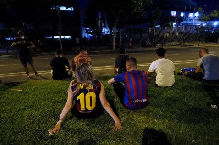 官方的推特服务器直接出现了崩溃。不少巴萨球迷聚集在诺坎普附近,他们难以接受梅西的离开。这些忧郁、悲伤的球迷聚集在俱乐部办公室大楼外,一些人坐在路边的草地上,面对梅西离队的消息,他们大多数人都沉默不语。