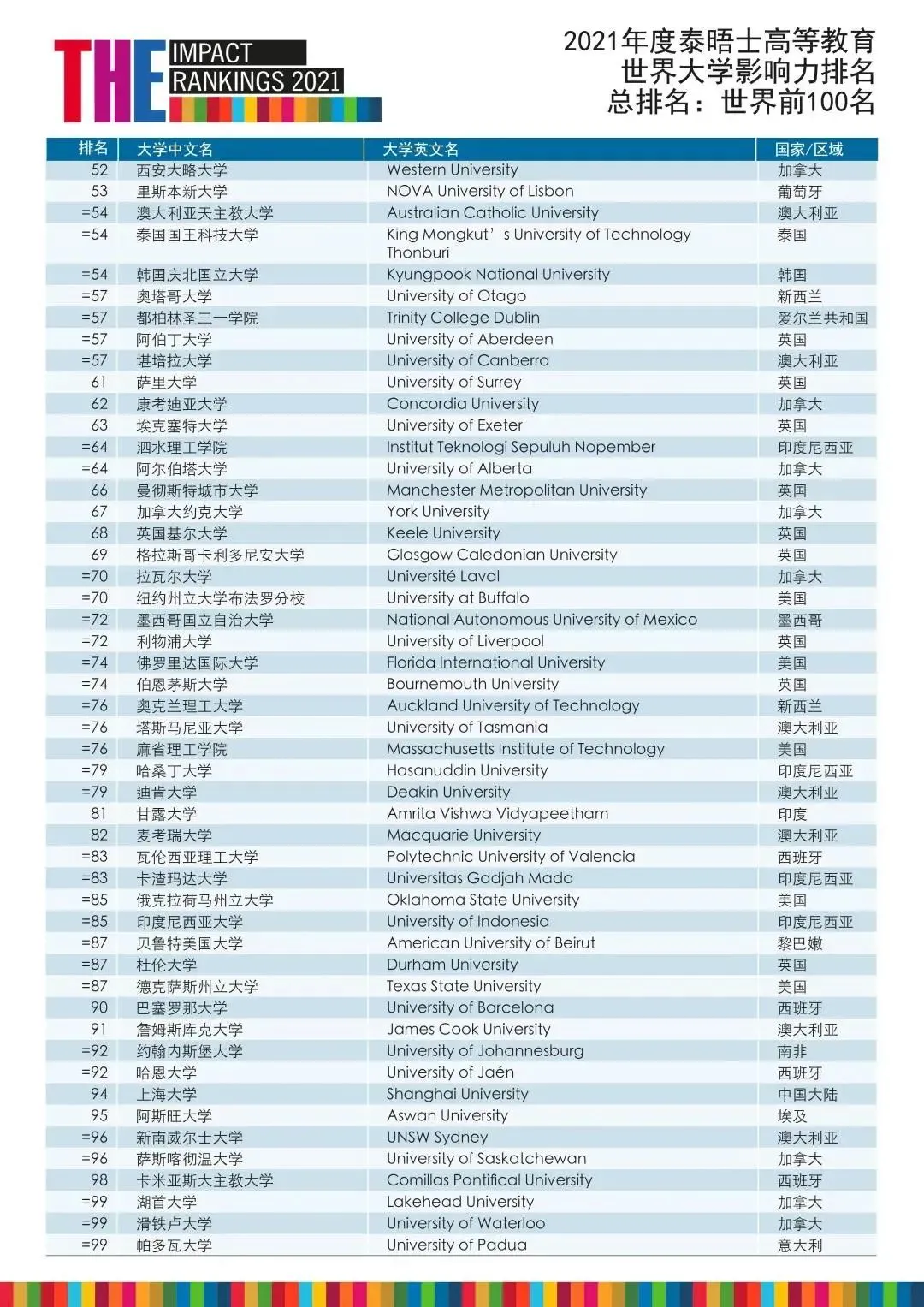 4月21日,泰晤士高等教育(THE) 发布了2021年度世界大学影响力排名。该排名是唯一评估大学在实现联合国17个可持续发展目标的进展情况的全球排名。
