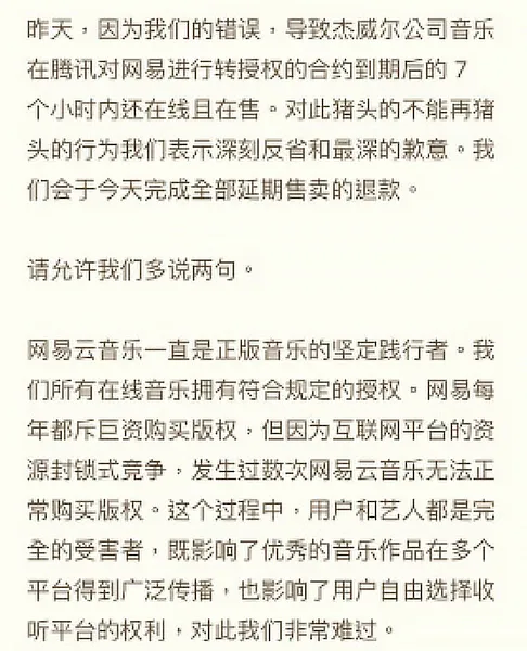 这事也给周杰伦的版权方杰威尔音乐和腾讯音乐惹急眼了,连发声明谴责网易云音乐侵权售卖周杰伦音乐版权。