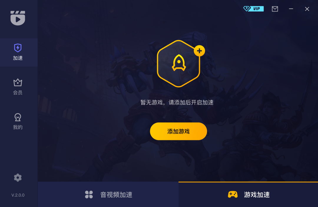 2、点击「添加游戏」选择需要加速的游戏。