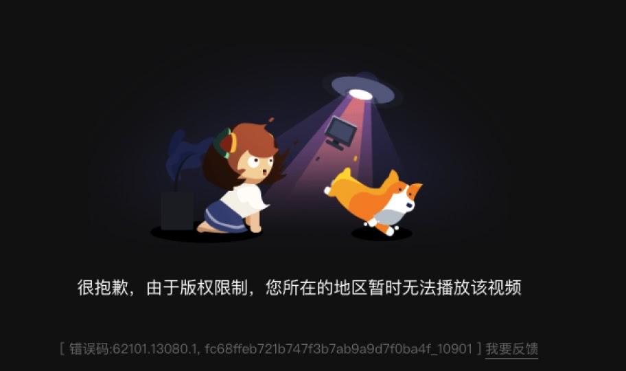 还有一种就是,版权不在中国的,海外用户如香港、澳门、台湾、美国、加拿大、澳大利亚、欧洲等国家和地区时,访问国内音视频软件会出现地区及版权限制问题,且仅能在中国大陆地区播放。