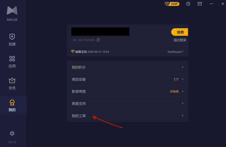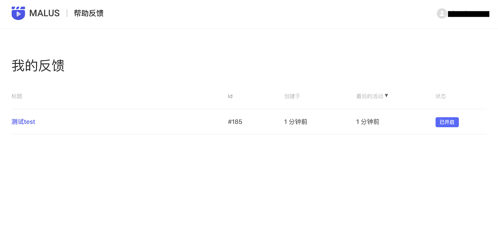 4、反馈成功后,你可以在上个界面的「我的工单」内查询问题进度。