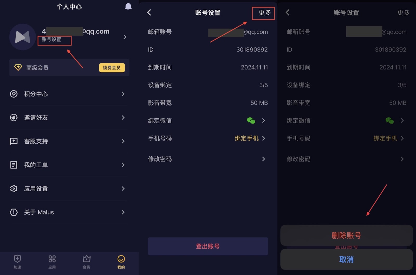 或者您也可以在Malus移动客户端内自行注销,操作步骤如下: